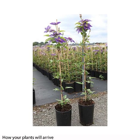 The large double blooms of Clematis ‘Multi Blue’ will provide you with a starburst of deep blue colour in early Summer and again at the end of the season, giving you twice the enjoyment of this extraordinary flower. A vigourous variety, it would look perfect twining its way through a mature tree, or smothering a large wall or fence. Height: 350cm (138″). Spread: 90cm (35″). Pruning group: 2.