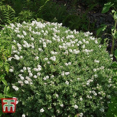 Hebe rakaiensis has a wonderful rounded habit that forms a low, dense cushion of glossy green foliage. This hardy evergreen shrub is topped with a covering of short, white flower spikes from early summer, which always attract pollinating insects. It’s neat, compact shape lends itself beautifully to oriental planting schemes, rockeries and the front of sunny borders, where it will add year round colour and structure. This RHS AGM variety is particularly useful for coastal or city gardens, given its tolerance for polluted and salt laden air. Height: 100cm (39″). Spread: 120cm (48″).