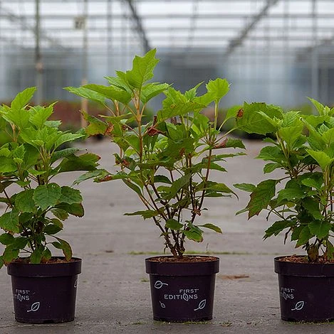 This rare variety is a lovely twist on the ordinary white-flowered form of Hydrangea quercifolia. From July to September, Hydrangea quercifolia ‘Amethyst’ has creamy-white, conical flowers that slowly transform to a rich plum red as they age. The unique flower colour is set against a background of handsome oak-like foliage that takes on purple and red tints in the autumn. Oak-leaved hydrangeas are resilient, low maintenance shrubs that require very little pruning and thrive in sun or light shade. They make excellent subjects for mixed borders and or woodland areas and established specimens are more drought tolerant than mophead types. Height: 2m (6.5ft). Spread: 1.8m (5.9ft).
