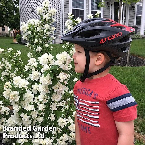 Inhale fragrant clouds of blossom all summer with this fabulous new Mock Orange! The first of its kind, Philadelphus ‘Pearls of Perfume’ represents a dramatic breeding breakthrough. Plants don’t just produce a single burst of flowers but continue to rebloom throughout summer. It’s the first Philadelphus that flowers on both old and current growth, resulting in a much longer flowering season. This compact Philadelphus forms a densely branching shrub, the branches carrying flowers all along their length. Masses of large, fully double, white blooms are produced from late spring and throughout summer. The flowers are strongly fragrant and deserve a spot where you can enjoy their intoxicating fragrance. Height: 120cm (47in). Spread: 60cm (24in).