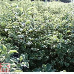 A superb evergreen shrub with wavy, grey-green foliage edged with a broad cream margin. The small leaves and pale variegation of Pittosporum tenuifolium ‘Variegatum’ give it a light and airy feel, unlike many evergreens which can appear very dark and dense. Beneath the foliage lies a well-branched structure of contrasting dark grey stems. Tiny red-brown flowers appear in late spring, but these are insignificant, and you will barely spot them.